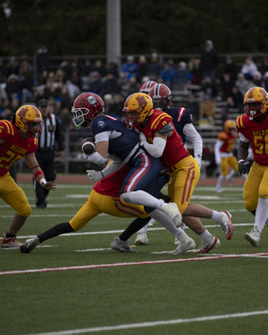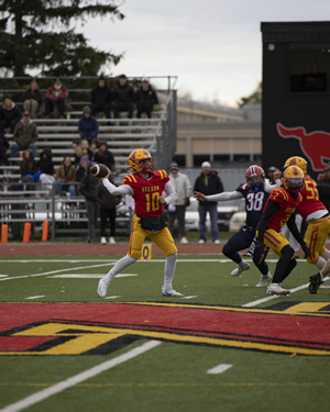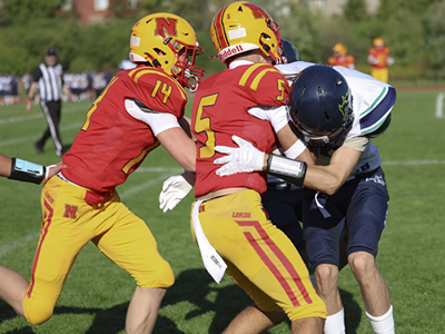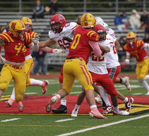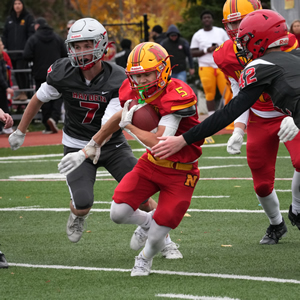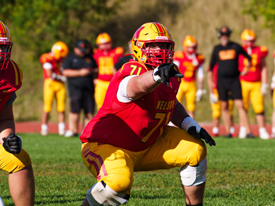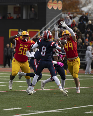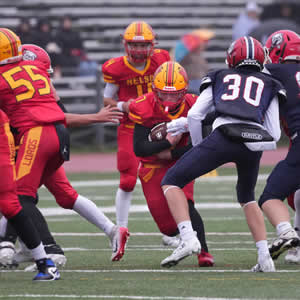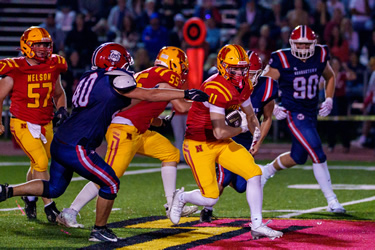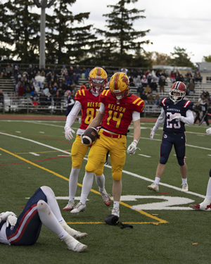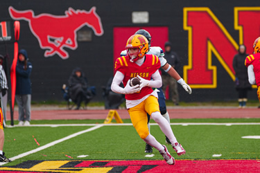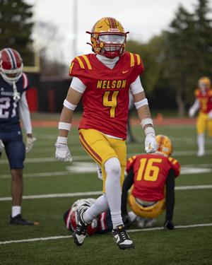Nelson did not let the extremely difficult conditions affect them as they rolled over Iroquois Ridge in Thursday's HSSAA Semifinal. The ground game was going strong as Zachary McGugan and Jacob Slominski each scored a pair of touchdowns. QB Zachary Beninger would connect with Santino Uvari and Matteo Monetta for passing touchdowns as well. Jordan Anastasiou would punch in a late major of his own as well on the ground. Kicker William Netto was perfect on converts as well as chipping in 3 rouges on Kickoffs.