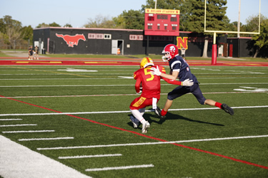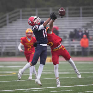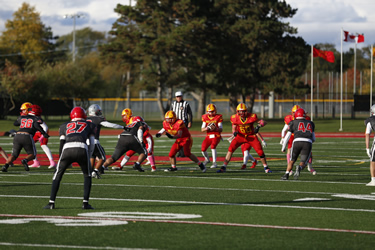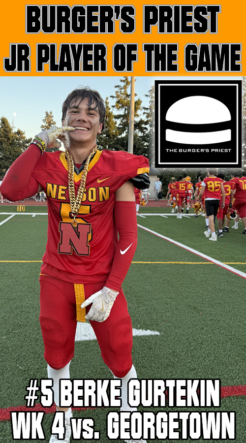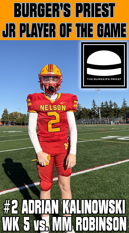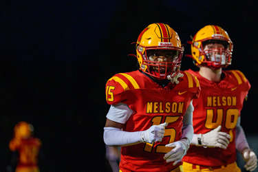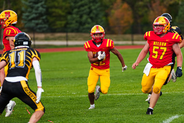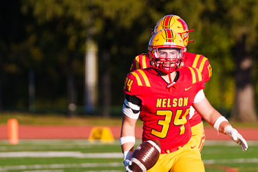 Nelson was in control from the outset on Wednesday in Oakville. The Lords dominated the game racking up a 21-0 halftime lead after a very quick first half of play. Nelson would explode in the 3rd quarter and win going away. Michael Kerr scored three touchdowns with Paulo Ordonez-Sanchez, Jacob Slominski and Coen Hall adding majors. Kicker Andrew Donnelly was a perfect 6 for 6 on converts.