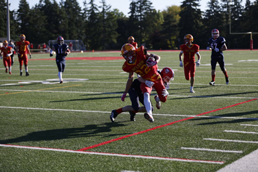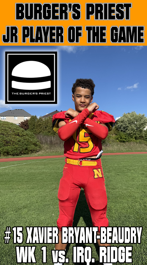 Bryant-Beaudry was a threat everytime he touched the ball scoring two touchdowns on the afternoon. A number of big returns before finally breaking one to the endzone and a long TD run on offence sealed the deal for the Lords. |
