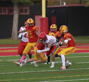 Along with teammate Zachary McGugan, Carmichael put in an impressive performance on both sides of the ball. Carmichael finished the game with 13 carries for 137 and 2 touchdowns along with 5.5 tackles on defence! |