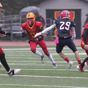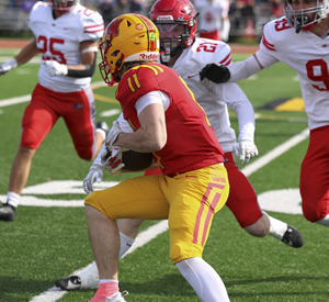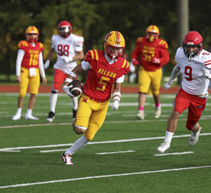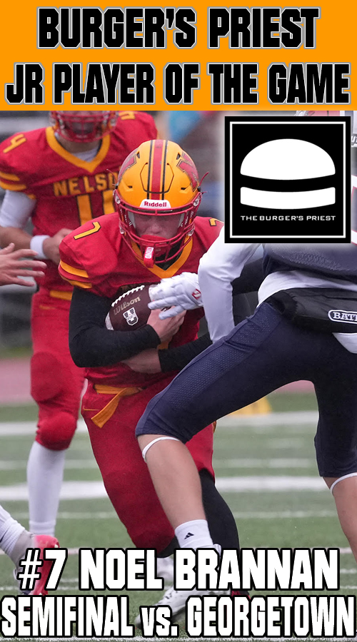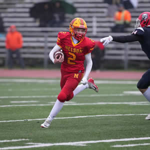 Brannan's tough running in brutal weather conditions led the Lords to a big Semifinal win. Three touchdown runs, two 50+ yards as well as a tough score from the goaline paced the Nelson rushing game. Brannan also made some key tackles on the defensive side as well. |