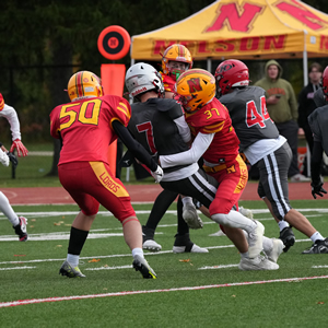 Nelson started fast against the 87's as Maddox Victorino capped a long drive with a short Touchdown Run. The Lords continued to dominate the first half as receiver Simon Garratt would score three majors on passes from Zach Islip. Michael Kerr would add a major of his own along the ground as Nelson led 35-4 at the half. Coen Hall would add a touchdown catch from Islip in the third before Georgetown found the endzone late in the game.