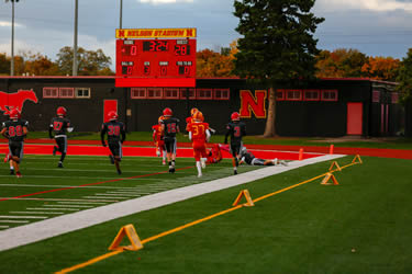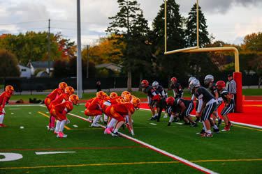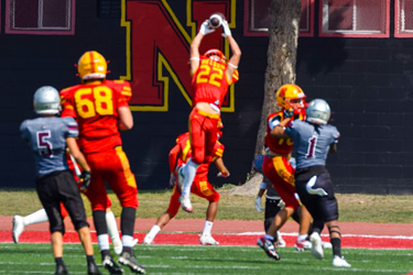 The Jr Lords were controlling the first half of play and had a 9-0 lead in the second quarter on a Mateo Monetta touchdown and defensive safety before a costly turnover allowed the Warriors to get back into the game. Huron Heights would capitalize on the mistake to turn the score around leading 13-9 late in the second quarter. Nelson added a short Adrian Kalinowski field goal to cut the Warrior lead to 13-12 at the half. The second half was all Warriors as Nelson just could not sustain any drives. Huron Heights added a late score to go up 19-12 but left the door open with a missed 2 point convert. The Lords could not take advantage as the Warriors closed things out for the win.