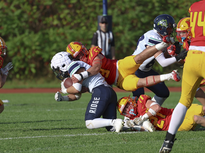 The Lords were in cruise control from the start and rolled to a big win on the road in Milton over the Mustangs. Nelson jumped out to a 35-0 halftime lead thanks to a big second quarter from the offence. The Lords got touchdowns on the afternoon from Ben Carmichael, Santino Uvari, Mateo Monetta, Tristan Jean, Jacob Slominski and Simon Garratt. Parker Ferguson also had his first career touchdown on an interception return. Kicker Will Netto converted on 6 of the 7 scores and the defence added a safety touch.