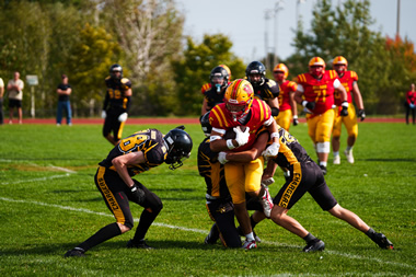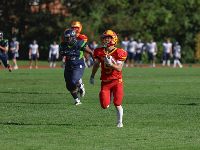 Kalinowski ran 7 times for 28 yards and a major while adding 4 tackles and 2 fumble recoveries on defence for the Lords. Kalinowski also added a field goal and 2 converts on Special Teams. |