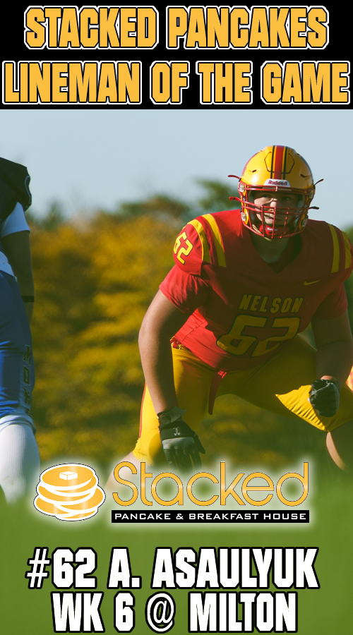 Nelson completed a perfect regular season and is yet to allow a point in HSSAA play after a big win in Milton. Touchdowns were scored by Tristan Jean, Michael Hattingh, Mateo Monetta, Justin Bryant-Beaudry, Oliver Hulbert and Judah Garratt. Adrian Kalinowski was a perfect 7 for 7 on converts in the win.