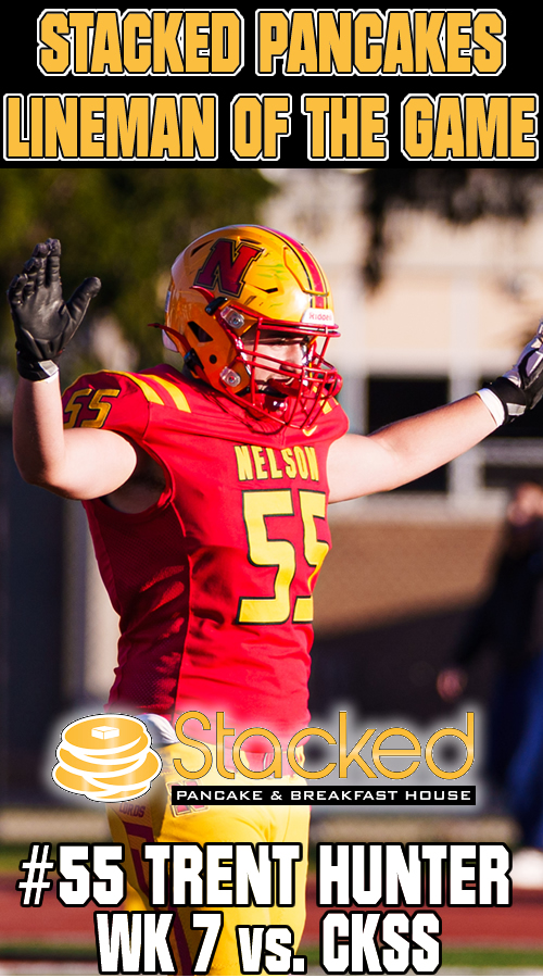 Nelson put together a complete game for the first time this season when it counted. The Lords started fast and never looked back dominating the opening half and cruising to a win after playing most of their bench in the second half. Nelson got three touchdowns from Mateo Monetta and two from Zachary McGugan. Running back Jacob Slominski would add a rushing touchdown as well. Receivers Simon Garratt and Anderson Manjak would add two point converts while the defence added two safeties. Kicker William Netto would account for the rest of the points on 3 converts and two rouges.