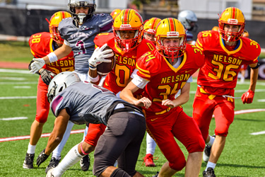 Nelson started scoring early and never looked back. The Lords had back ups in early in the 1st Quarter en route to a big victory. Scoring for Nelson were Maddox Victorino (3 Tds), Michael Kerr, Paulo Ordonez-Sanchez (2 Tds), Everett Langdon, Coen Hall and Jacob Slominski.